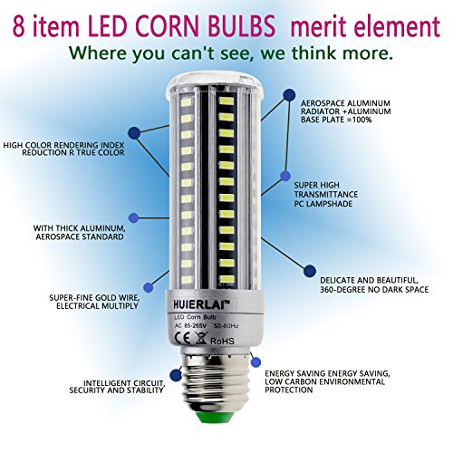 HUIERLAI 4-Pack 15W Super Bright LED Corn Bulb For Residential and Commercial Projec E26/E27 ( 120W Incandescent Bulb ) 1360Lm AC85-265V White(6000K) Non-Dimmable.
