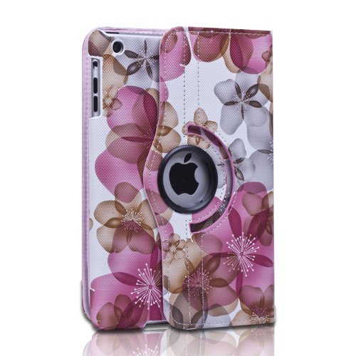 Ctech Stylish (Pink Flower) PU Leather Case With 360 degrees Rotating Swivel Stand for Apple iPad mini 7.9 inch tablet