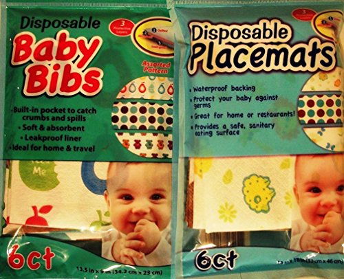 Disposable Baby Bibs & Placemats - 6 Ct Each - Ideal for Home & Travel