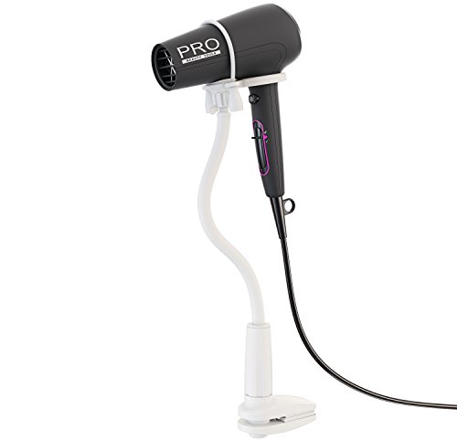 Skywin Hands Free Hair Dryer Stand, Clamp Mount Hair Dryer Holder Adjusts and Swivels 360 Degrees - White Premium Soft Touch Silicon