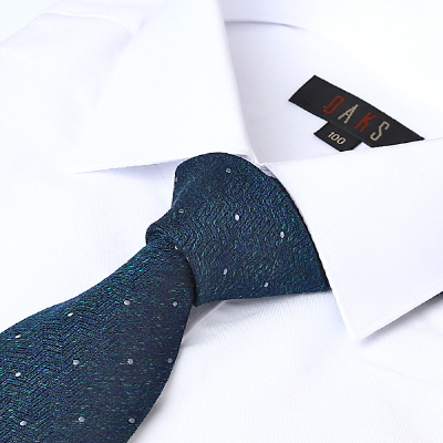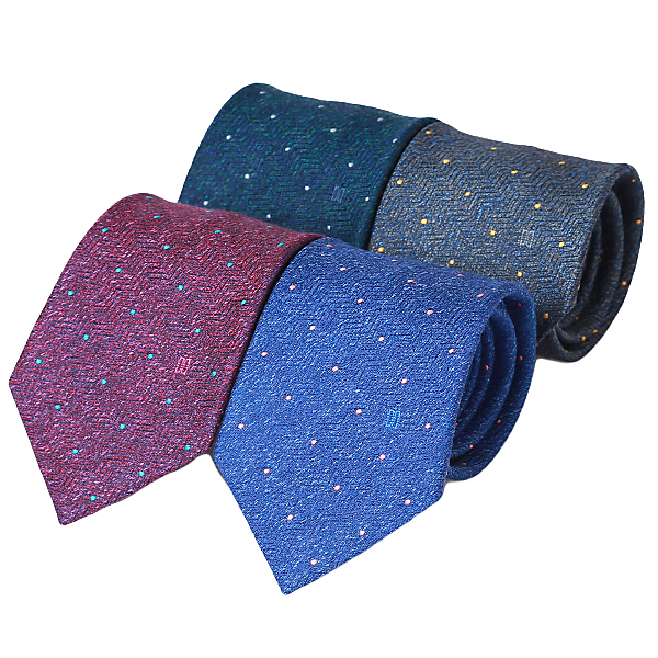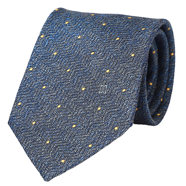 매트한 조직감에 바닥에 지오메트릭 짜임과 도트패턴의 조화가 세련된 넥타이.