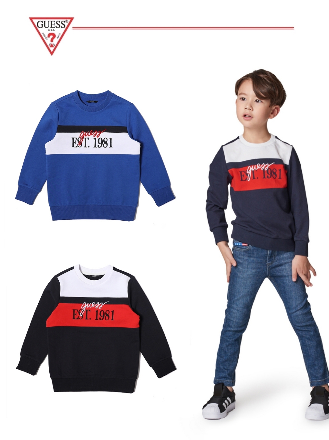-남아 컬러 블럭킹 맨투맨 티셔츠입니다. 게스 오리지날 무드의 맨투맨 티셔츠로 시그니처 컬러를 블럭킹하여 스포티한 느낌을 줍니다.