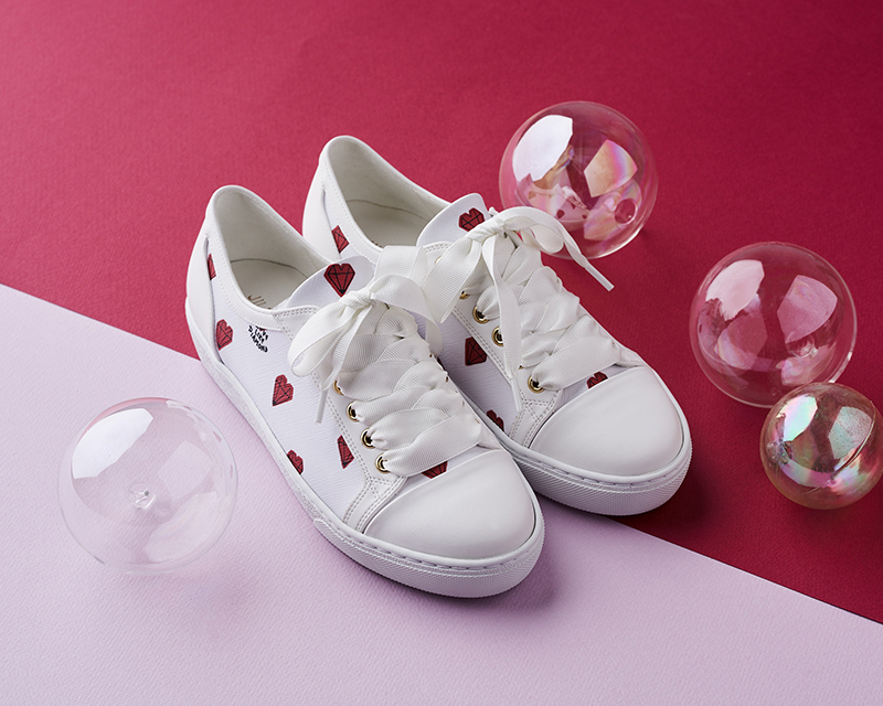 화이트 컬러의 질스튜어트만의 다이아몬드 패턴이 새겨져 유니크하고 사랑스러운 느낌의 스니커즈입니다.