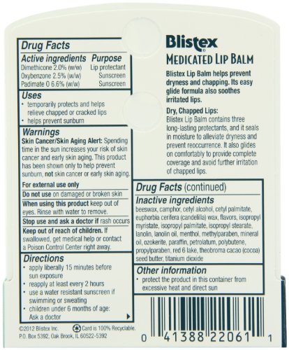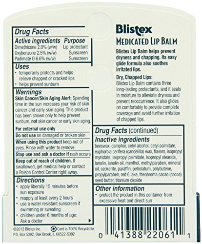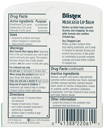 -. Title : Blistex Medicated Lip Balm with SPF 15 for Dryness, Chapping and Soothes Irritated Lips, 0.15oz