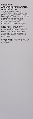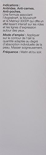A formula containing argireline, myoxinol and matrixyl that provides a visible dermo-decontracting and smoothing effect on expression lines and wrinkles around the eyes. Helps improve the appearance of wrinkles, dark circles and puffiness.Feature