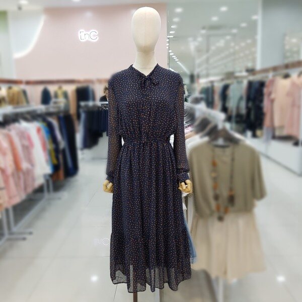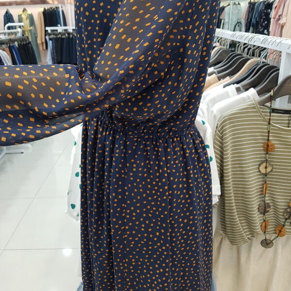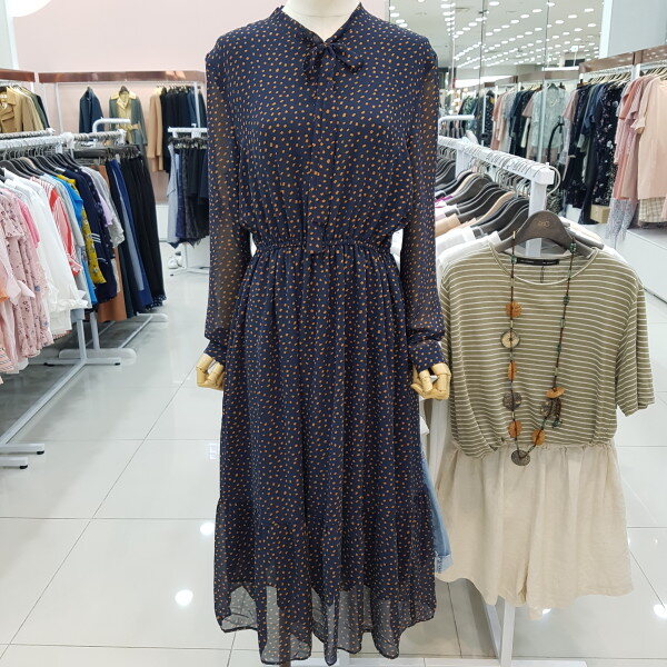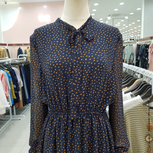 깨끗한 네이비바탕에 은은한옐로우 프린트가 고급스러우면서도 산뜻한느낌을주며 허리밴딩으로 날씬해보이는 효과까지 주는 아이템
