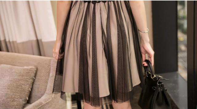 デコルテとフレアスカートの柔らかい透け感が、女性らしさを引き立ててくれます。