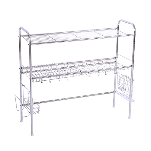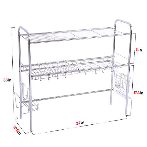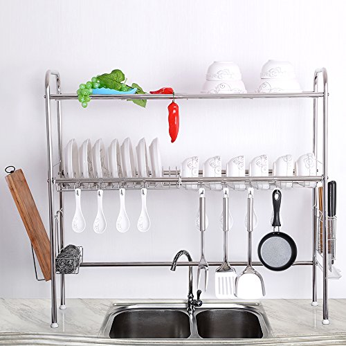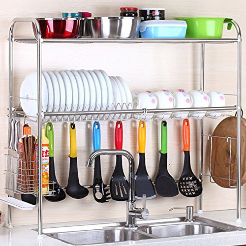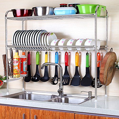 -. Title : 2-Tier SUS304 Stainless Steel Adjustable Dish Drying Rack Utensil Holder,Over the Sink Kitchen Storage Shelf (Double Groove) …