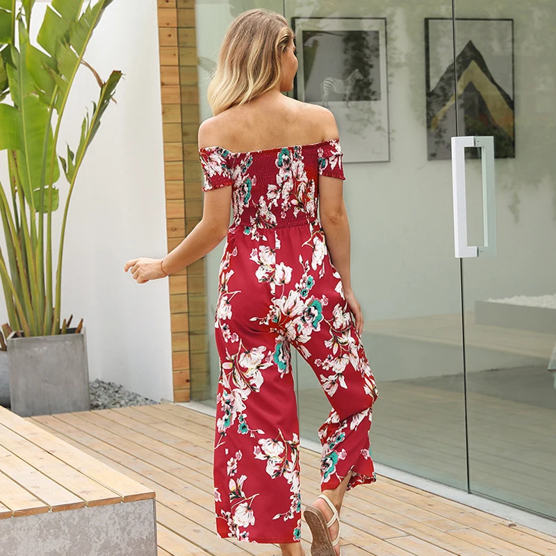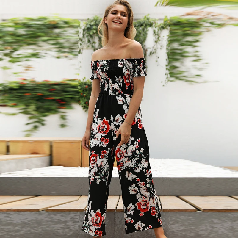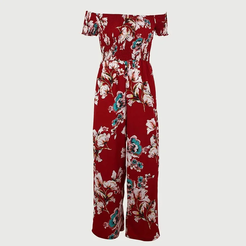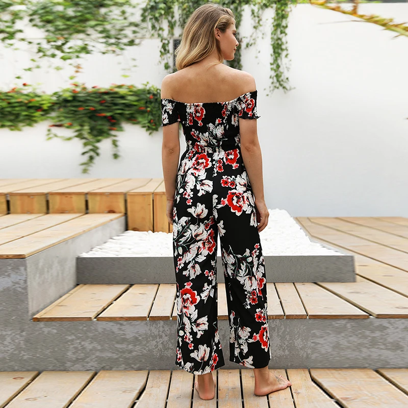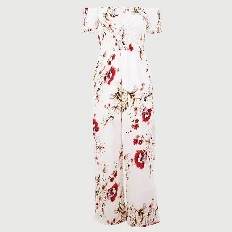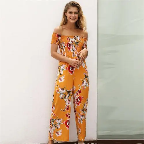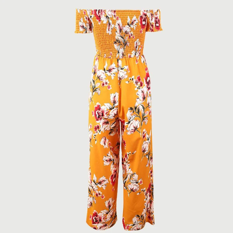 Pattern:off shoulder wide leg jumpsuit