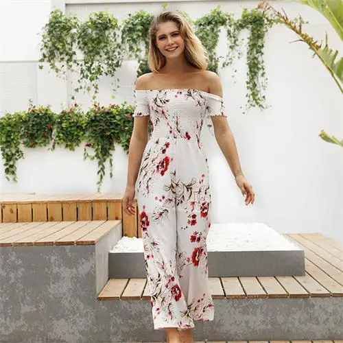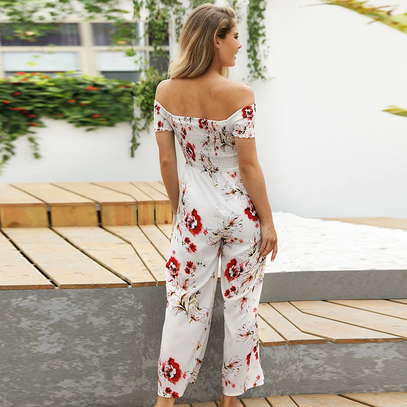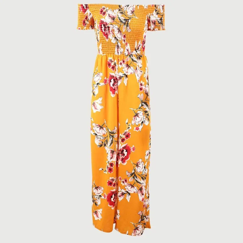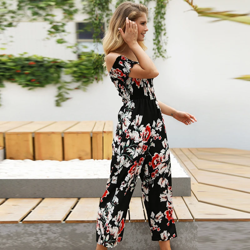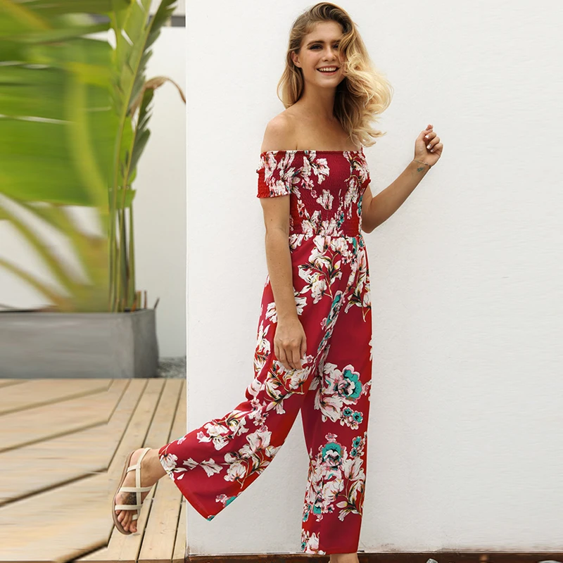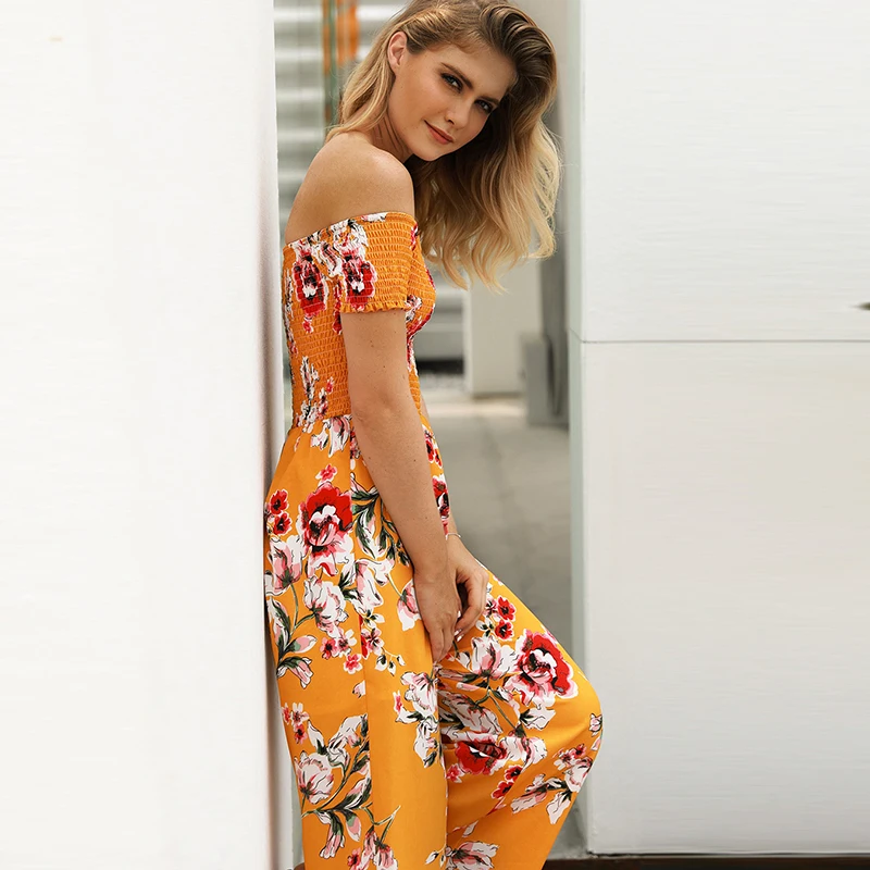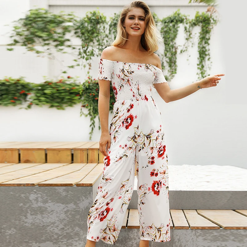 Pattern:off shoulder wide leg jumpsuit