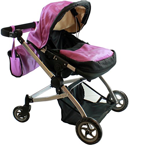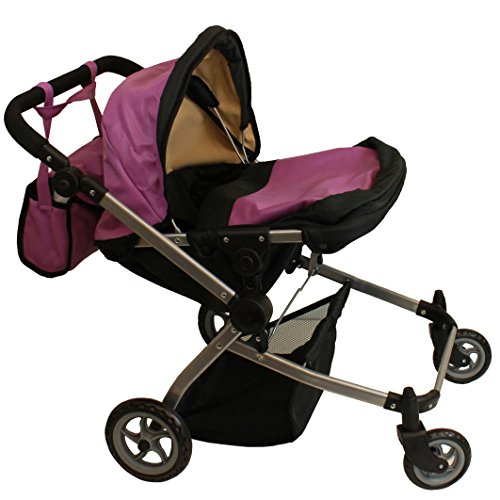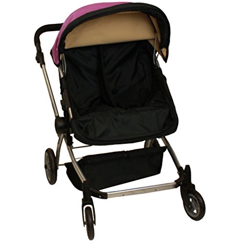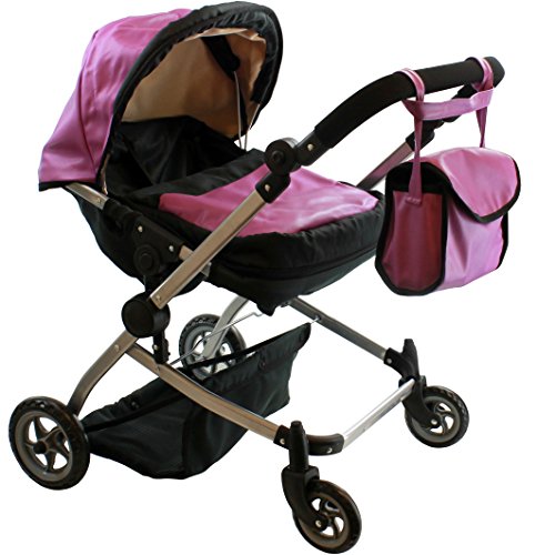 A 1 of kind Luxury Leather Twin Doll Pram/stroller. The possibility's are only limited by your imagination, make it a pram/ stroller sitting position or laying position, Wheel it when the dolls are facing you or the out side world, a free carriage bag is incl. and your princess will get lots of attention while strolling her dolls.Feature