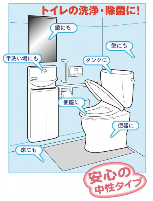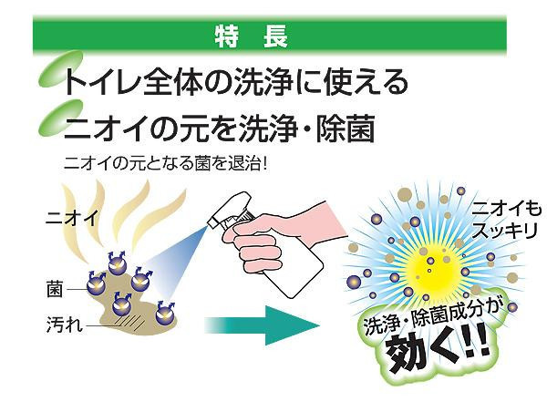 ニオイの元となる菌を退治します。便器だけでなく鏡、洗面台などトイレ全体の洗浄に使えるので毎日のトイレ掃除はこれだけでOK!!