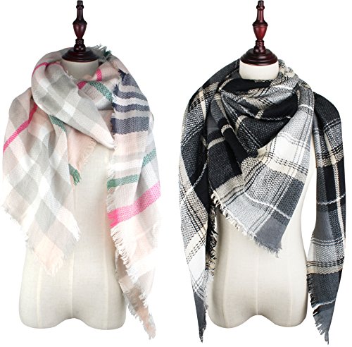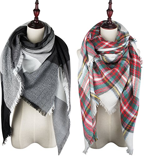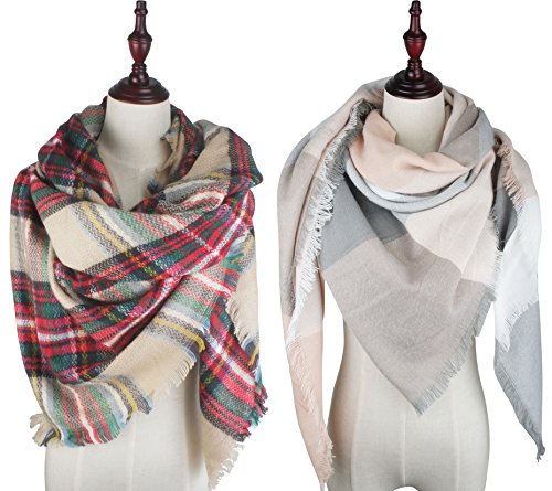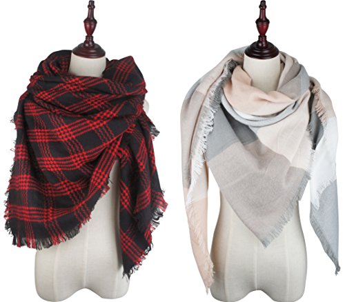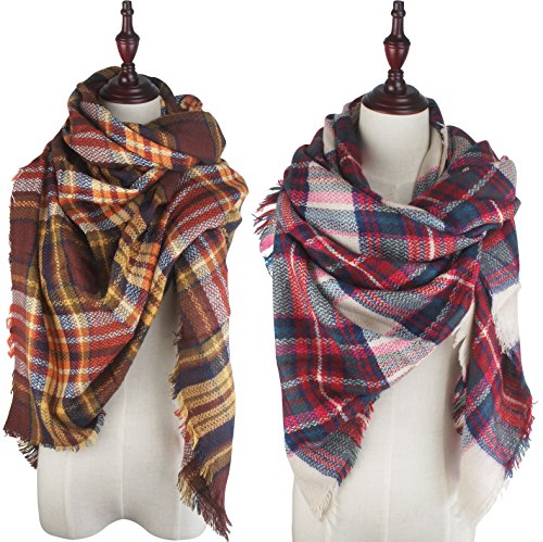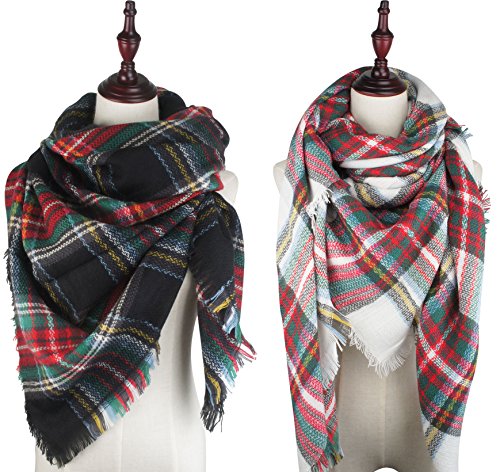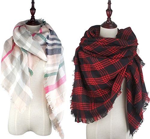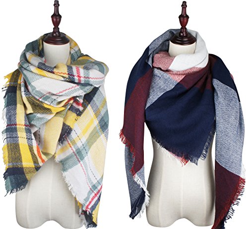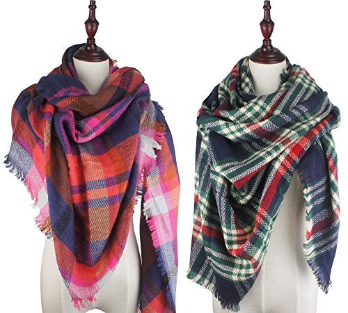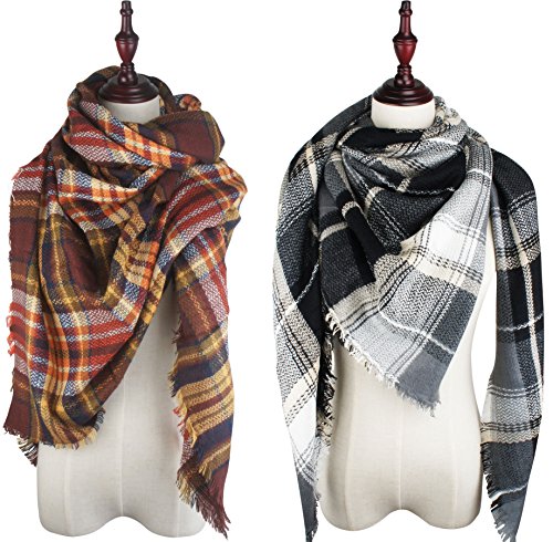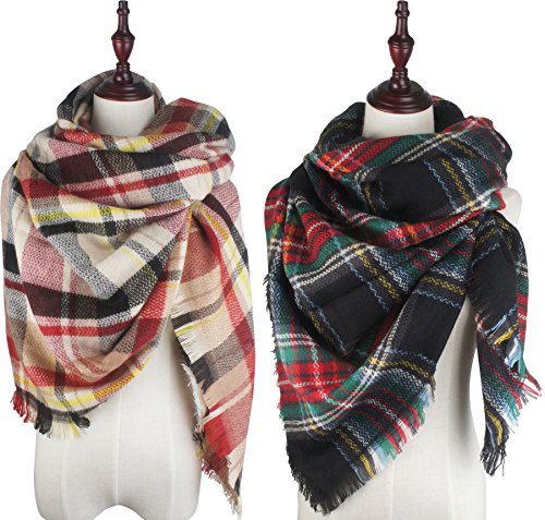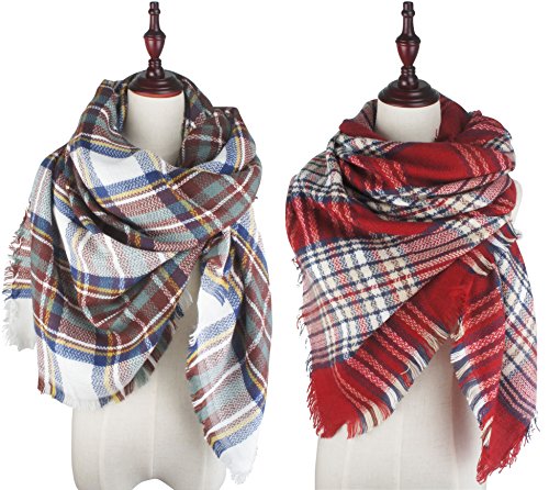 | VIVIAN VINCENT 2 Pack of Soft Classic Luxurious Blanket Tartan Square Scarf Wrap |