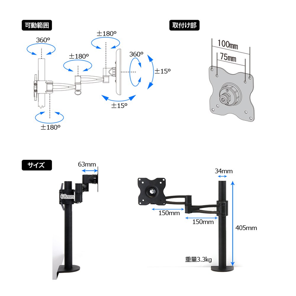 The position of the monitor can be more flexibly adjusted / operated.