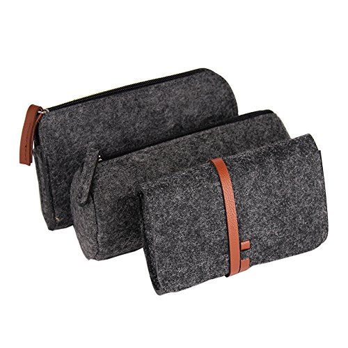 Channelook 3 Pack Stationery Organizer Storage Pen Case Pencil Holder Cosmetic Pouch Bag (Dark Grey)