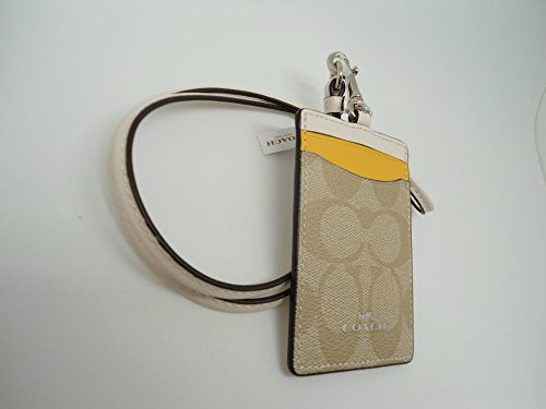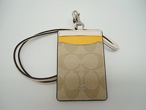 -. Brand : -. Department : womens -. Feature : This lovely lanyard is crafted of 's top quality, durable and very easy to care for PVC coated canvas in 's iconic khaki Signature C design with Saddle color leather trim and neck strap. / There is a detachable leather strap with a polished brass swivel dog leash style clip on a logo etched ring. The 15" drop neck strap is perfect for wearing around the neck. / One side has a window for your badge, ID, etc. The other side has two credit card slot pockets. / ID Card Badge Measurement Approximately: 2 3/4" (L) x 4" (H) / Strap Length: 15" -. PackageQuantity : 1 -. ProductGroup : Apparel -. ProductTypeName : LAGE -. Size : One Size -. Title : Signature PVC Leather Lanyard ID Badge Holder Case