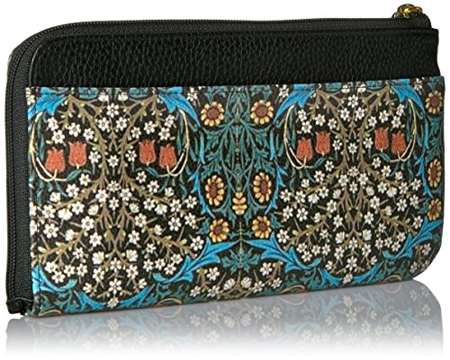 Buxton Art Nouveau L-Zip Expandable Wallet with Removable Strap, Black
