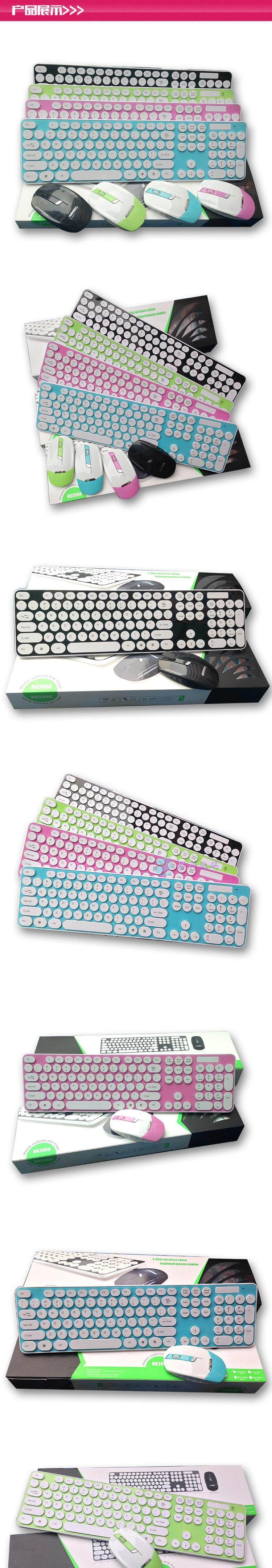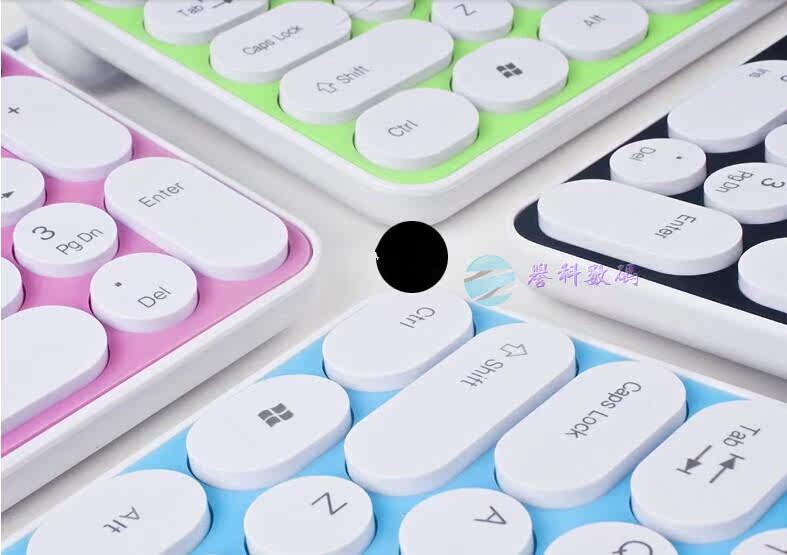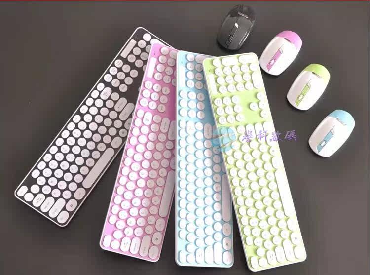 圆形按键无线键鼠套装女生彩色时尚卡通简约家用办公鼠标键盘