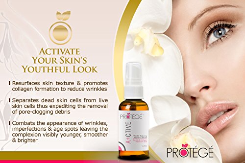 -. Feature : ANTI-WRINKLE AT ITS BEST - As You Age, Your Skin's Ability to Renew Itself Slows. Vitamin A Activates the Skin Renewal Process, which Increases Collagen Levels. This Makes Skin Smoother and More Even-Toned, Resulting in a More Youthful Appearance. / NOURISHES AND REPAIRS - Anti-Wrinkle Serum A+CTIVE Nourishes and Repairs Skin, Sending Essential Nutrients to Cells Making Your Skin More Elastic and Healthier. Regain that Youthful Glow! / POTENT A+CTIVE INGREDIENTS - Contains Sea Kelp and Hyaluronic Acid, which Together Act as a Moisturizing Powerhouse. They improve Skin Texture and Plump Skin Naturally so it Feels Smoother and Softer. A+CTIVE Starts with Vitamin A, Then Brings On a Whole New Level of Anti-Wrinkle Efficacy! / MADE IN USA - In Small Batches to Ensure Quality. Natural Ingredients. Paraben Free. We Do Not Test on Animals. / ★COMPLETE GUARANTEE★ We Go Far Beyond Amazon's 30 Day Guarantee. Protégé Provides a 365 Day Money Back Guarantee. If for Any Reason You are Not Satisfied, Simply Let Us Know and We Will Issue You a FULL Refund. No Questions Asked. NOTHING TO RETURN. You Risk Nothing When You Order A+CTIVE, So Order Now!