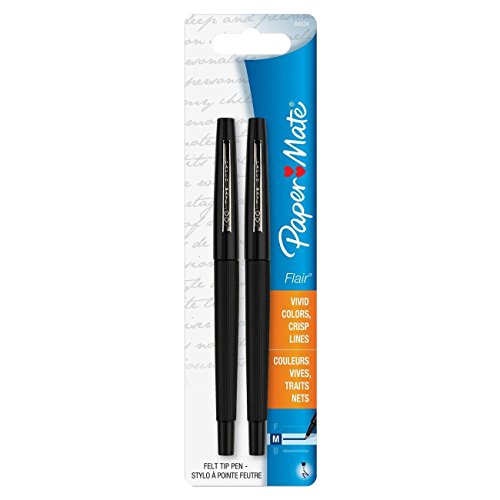-. Title : Paper Mate Flair Felt Tip Pens Medium Point, Black Ink, Pack of 2 Pcs.