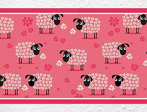 I-love-Wandtattoo b-10011 Nursery Wall Decal Border "Sheeps in Pink" Wallpaper Stripes Girl kids decoration