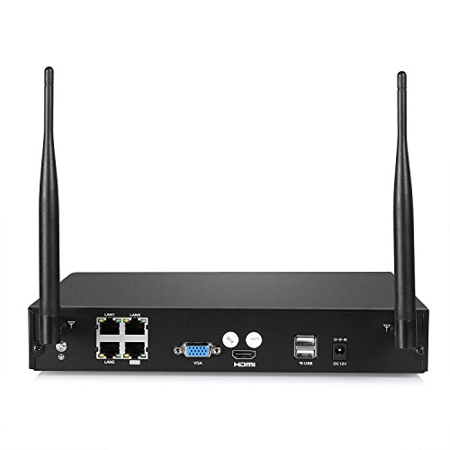 -. Feature : 【Plug and Play System】Smart wireless 720P HD security camera system is designed for effortless home and business video surveillance. Plug and play system with auto paring makes installation a complete breeze. / 【Full 720p HD Viewing, Recording and Playback】IP66 Weatherproof cameras for indoor and outdoor application. Access your recordings and watch live monitoring video from any where in the world by downloading and installing the free mobile app on your smartphone, tablet or PC. / 【Remote & Local Monitoring and Motion Detection】Receive instant alarming email notifications when unexpected movements are detection by cameras to be always in-the-know. Infrared night vision at 100ft for 24/7 coverage. / 【Enhance The WIFI Transmission】NVR can be used as a repeater to solve far distance transmission problem or through wall transmission by using the included WIFI extension antenna or set one of the cameras as a repeater. / 【Professional Customer Support】24 hour Customer service,30-Day Money Back Guarantee,90 Day for an replacement, Lifetime Tech Support.