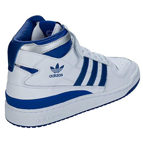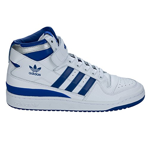 Studio : adidas Originals Publisher : adidas Originals Binding : Apparel Product Description Men's adidas Originals Forum Mid Refined Trainers in White Royal.- Lace up closure with metal eyelets.- Hook-and-loop strap over.- Padded ankle collar.- Mid cut ankle boot.- TPU adidas brandmark across ankle strap.- Printed Trefoil logo on woven tongue label.- leather 3-Stripes and metallic silver collar details- Trefoil logo on side.- OrthoLite sockliner.- Leather and Synthetic upper, Synthetic and Textile lining, Synthetic sole.- Ref: F37830. 0