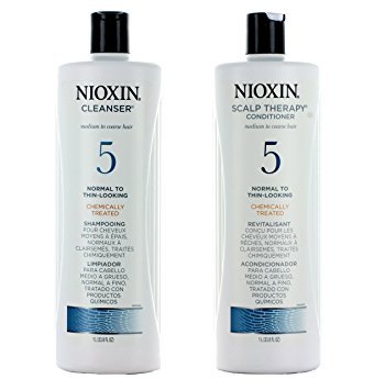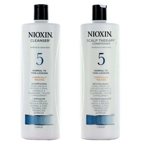 Nioxin System 5 Cleanser & Scalp Therapy For Normal to Thin Hair 33oz Duo Set System 5 for fuller-looking, moistured hair. System 5 is specially designed for normal to thin-looking, medium to coarse, natural or chemically-treated hair. It delivers smoothing control to hair while refreshing the scalp and restoring moisture balance. A daily hydrating cleanser that gently removes residue and DHT from the hair and scalp to promote a healthy scalp environment. It also provides nourishing vitamins, proteins and amino acids. NIOXIN Scalp Therapy: A daily hydrating conditioner that moisturizes and energizes while promoting a healthy scalp environment with soothing essential oils, special anti-oxidants and enzymatic complexesFeature
