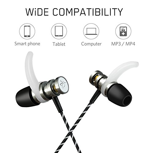 -. Feature : High-definition sound quality with super clear music, partly reduces surrounding distractions. Premium Earbuds for the stereo earbud headphones with build-in mic, surround sound effect with Enhanced Bass, real music. / Ultra soft ergo-fit in ear head phones conform instantly to your ear canals with 6 included sets of anti-drop HORN-SHAPE ear tips, ensuring a custom, comfortable fit and won't easy to slip out. Select an earphone sleeve that provides the best fit and sound isolation. It should be easy to insert, fit comfortably. and easy to remove. / Connected by a 3.9ft undetachable cable with practical and enhanced TPE material, adding more durability and comfortability to your wearing experience. Comfortable in-ear design, snug and secure, make sure the headset stay in place and your music stays smooth when you are running, cycling, exercising and doing other activities. / Extreme flexible tangle free special cable including inline controller with universal microphone. Single 3.5mm aux jack: no hassle with cables around your neck, with a single 3.5mm jack input provides easy and secure usage. Omnidirectional microphone with latest technology makes a strong and durable audio earphone. / Ideal for Apple Devices | Android Smartphones | Windows Phones | Portable Music Players like iPhone 6s, 6s Plus, 6, 6 plus, 5S/ iPad/ Some of Samsung Galaxy and Note Series, Nexus, HTC, Laptops, Tablets ect.