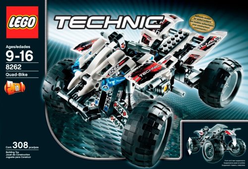 -. Binding : Toy -. Brand : L.E.G.O -. Color : Multi -. Department : Toys -. EAN : 0673419111935 -. Feature : 2-in-1 model: Includes instructions for rebuilding into a red dune by / Comes with functioning steering, moving pistons and full suspension is a challenging build that will keep your builder busy for hours / 2-in-1 model rebuilds into red Dune By / Quad Bike measures 9" long and 4" tall / Contains 308 pieces -. IsAutographed : 0 -. IsMemorabilia : 0 -. Label : L.E.G.O -. Manufacturer : L.E.G.O -. Model : 8262 -. MPN : 8262 -. PackageQuantity : 1 -. PartNumber : 8262 -. ProductGroup : Toy -. ProductTypeName : TOYS_AND_GAMES -. Publisher : L.E.G.O -. ReleaseDate : 2009-01-01 -. SKU : BUIL-L.E.G.O-TECH-RACE-8262_QUAD_BIKE -. Studio : L.E.G.O -. Title : L.E.G.O Technic Quad Bike 8262 -. UPC : 673419111935 -. Warranty : Replacement parts: Go to L.E.G.O.com or call 1 800 422 5420