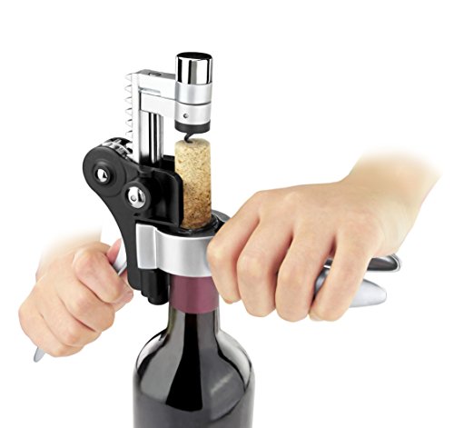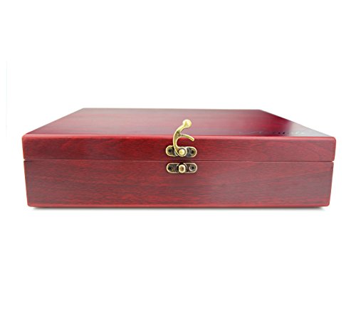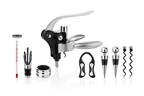 -. Feature : Includes a rabbit lever-style corkscrew, two bottle stoppers, a drip ring, foil cutter, pourer/stopper, wine thermometer and two extra cork-pull worm / Presented in a classic mahogany color wood box / High quality wine accessories perfect for any bar / A great gift for any wine enthusiast / Box Dimensions: 11-inch by 9.75-inch by 2.7-inch