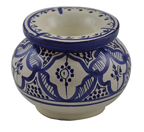 -. Feature : Large 5.5 in W x 4.5 in H / Imported from Morocco / This is an authentic, handcrafted Moroccan Ashtray / Efficient in reducing smell of smoke with no mess that comes after / Top part removable to throw away cigarettes and fits back easy