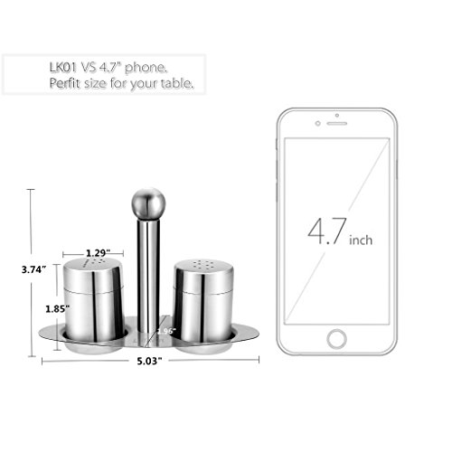 Durable and Portable—Set of 3 including tray,contains one salt shaker(1.85x1.29in),one pepper shaker(1.85x1.29in) and an elegant stand (5.03x3.74x1.96in). Comes with a carrying stand makes this lightweight cruet set passing easy