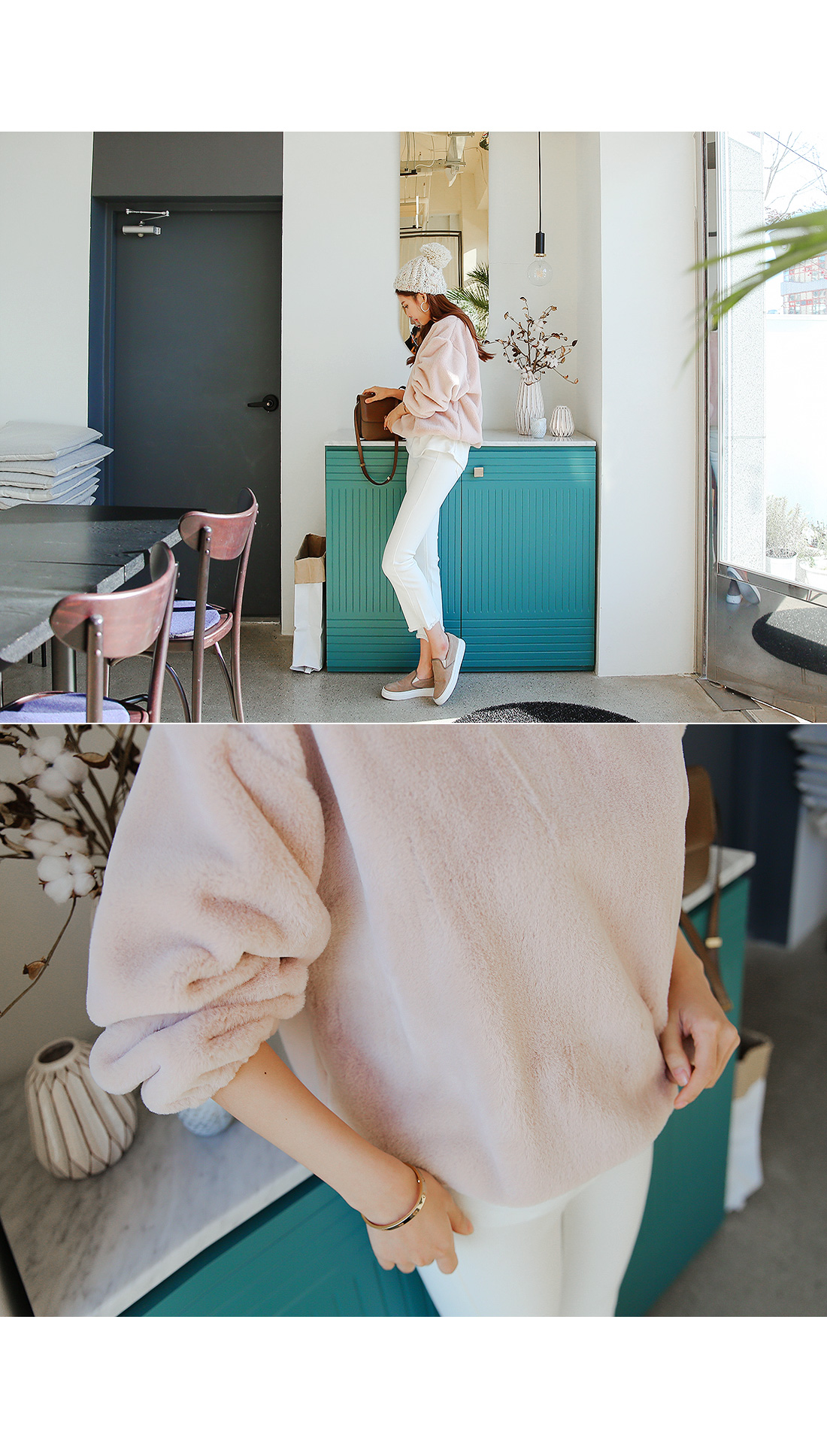 부드럽고 따듯한 퍼 디테일로 요즘 같은 날씨에