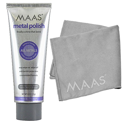 -. Feature : You will receive (1) 4 oz. MAAS International Metal Polish and (1) MAAS International Jewelry Polishing Cloth / Clean and restores the original brilliance of brass, copper, chrome and stainless steel surfaces. / Handles the toughest jobs yet gentle enough for delicate antiques / Applies a strong anti-tarnish corrosion inhibitor plus long-lasting protection / Cloth: Dry-treated with exclusive MAAS Rouge formula to quickly restore original lustre to all metals, diamonds, stones, etc.