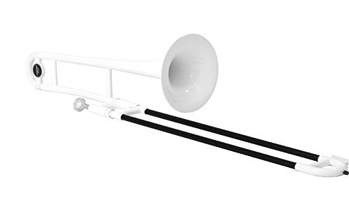 Studio : Zhengzhou Aucs Co.,Ltd. Publisher : Zhengzhou Aucs Co.,Ltd. Product Description White Bb Tenor Plastic Trombones: Available in 7 bright colours and 4 metallic finishes High gloss appearance Contemporary brace styling Made from toughened ABS plastic - no dents Damage resistant finish - no scratches Ultrasonically welded - no glue to come unstuck Functional features: Lock ring slide Double radius crook slide Pitched in Bb Weighs around 800g, half the weight of a brass trombone Accepts all standard mouthpieces Balanced for comfortable holding .005" bore 8.25" bell diameter Free bonus items: Durable padded gig bag Robust stand in matching colour Handy cleaning kit 0