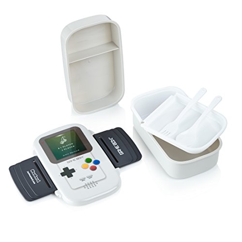 INFORMATION: The bento lunch box with durable plastic cutlery comes in a retro grey Gameboy-design and measures 13.0 x 19.5 x 10.0 cm / 1410ml (45fl oz).