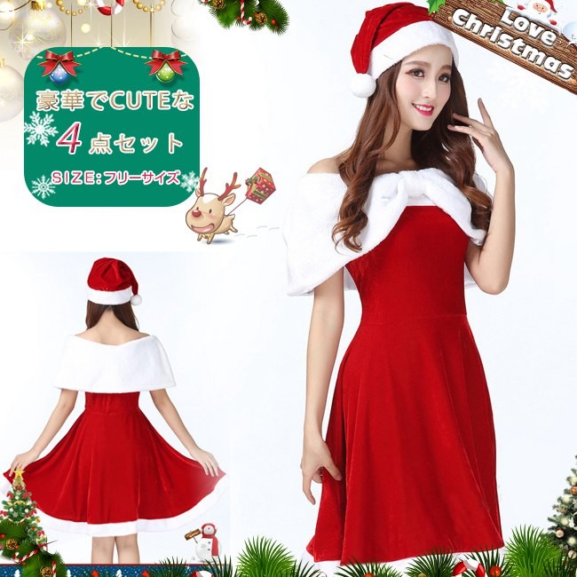 サンタ コスプレ レディース セクシー クリスマス 衣装 ケープ ワンピース 帽子 コスチューム サンタクロース 仮装 変装 大人 服 セットアップ サンタコス かわいい パーティーグッズ イベント用品 余興 xmas Christmas cos 女性用