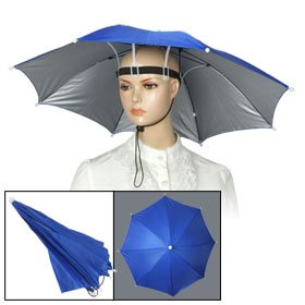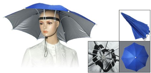 -. Title : Fishing Elastic Headband Metal Frame Hands Free Nylon Umbrella Hat Blue