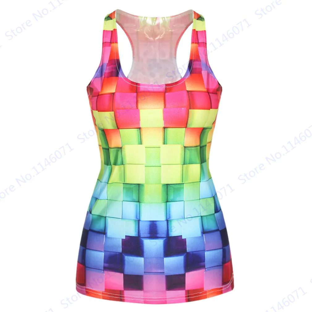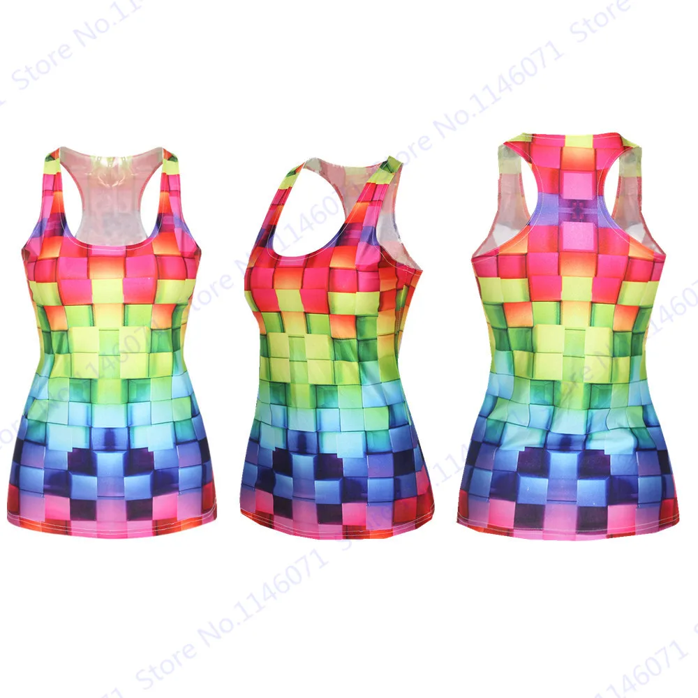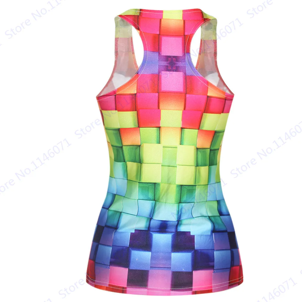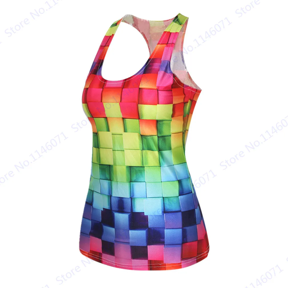 Features 3::Gradient Colorful Plaid Print Running Vest Femininas Sports Tanks Tops
