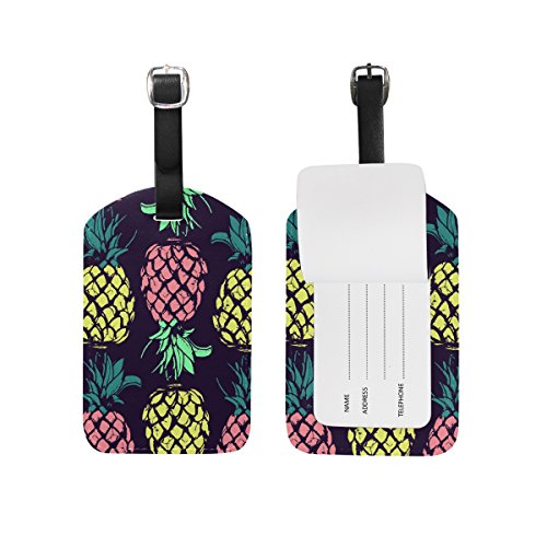 (My Little Nest)/Accessories/Luggage, Bags Travel/DIRECT FROM USA/Travel Luggage Tag Colorful Pineapple Fruit PU Leather Baggage Suitcase Tag Name Address ID Lab...