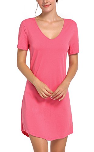 -. Feature : Material: 95% cotton & 5% spandex / Black, navy, blue, orange, light blue, light purple, grey, watermelon red available. Standard US SIZE from XS to XXL / This sleepwear is very soft and it is also loose, leave much more room for you / Short sleeve & almost knee length, feeling much freedom while you are walking / It is a great choice to wear this night shirt while watching TV with your family or your friend