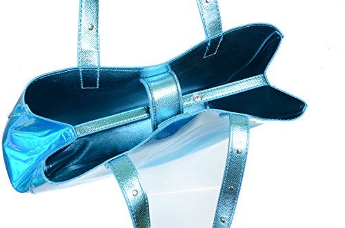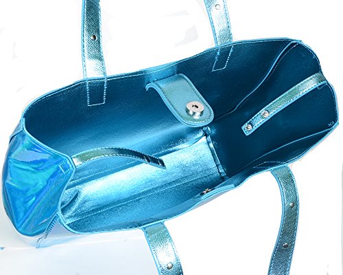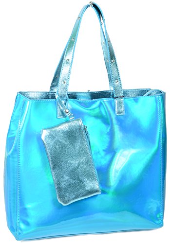 Metallic Blue Iridescent Studded Large Tote Bag Purse w/ Wristlet