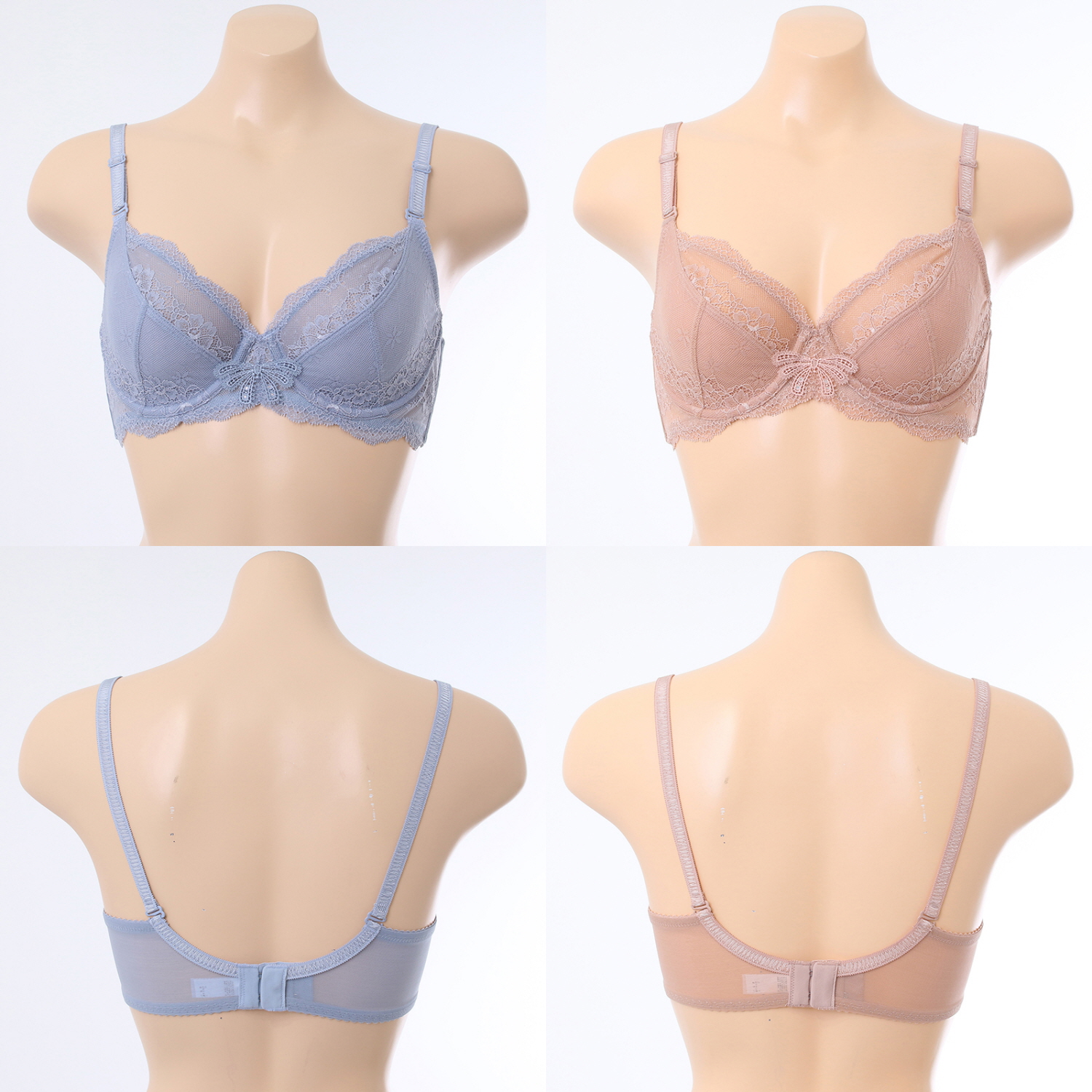 스트레치성이 좋은 자가드 레이스 홑겹 제품으로 하컵부분에 면원단을 덧대어 비침이 없으면서도 시원하고 편안한 홑겹제품의 착용감을 느낄수 있습니다.앞중심쪽에 귀여운 리본모양의 모티브를 매치하여 로맨틱함을 더하였습니다.베이직한 분위기의 브라운과 그레이 컬러 구성**부인군세트팬티(VPTF402A)