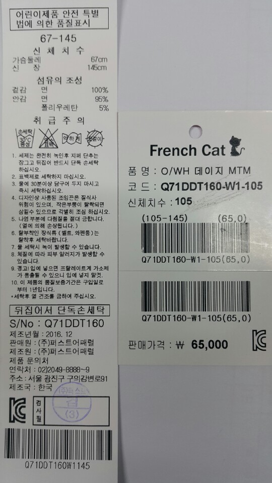 소재-겉감 면 100% 안감-면95% 폴리우레탄 5%