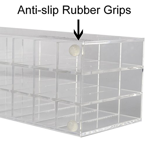 ANTI-SLIP BOTTOM – Our premium acrylic lip gloss holder is designed with four anti slip rubber grips at each bottom corner to ensure it stays in place and won’t fall over when taking anything from it
