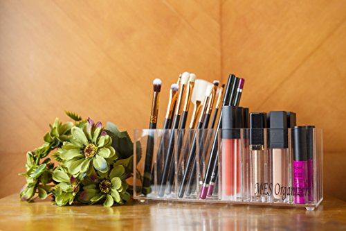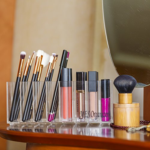Acrylic Lip Gloss And Lipstick Organizer Holder – 24 Space Clear Cosmetic Storage Makeup Organizers For Counter For Lip Gloss / Tall Lipstick / Brushes / Eyebrow Pencil & Pen / Mascaras And Others