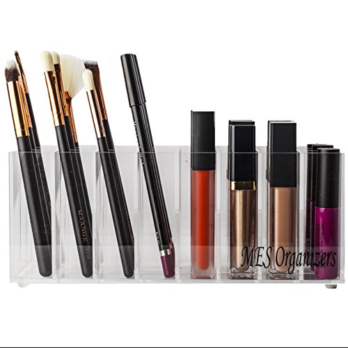 MAKEUP ORGANIZER DIMENSIONS – 9” (L) X 3.5” (W) X 3.15” (H) with an inner diameter space of 1”, ensuring that it will easily fit all your tall lip gloss and lip stick products