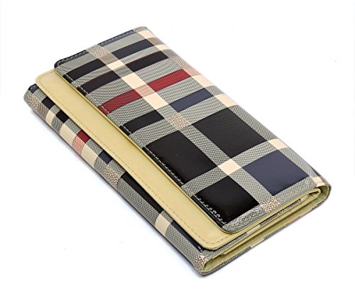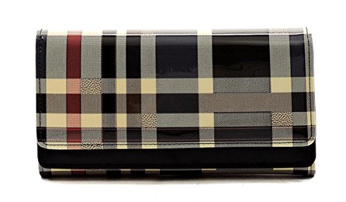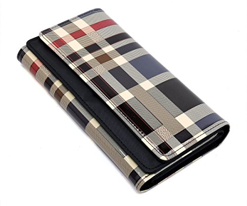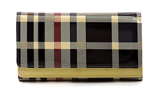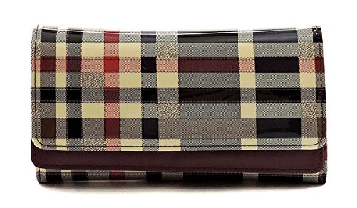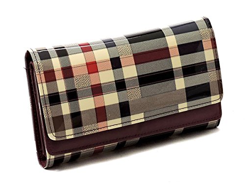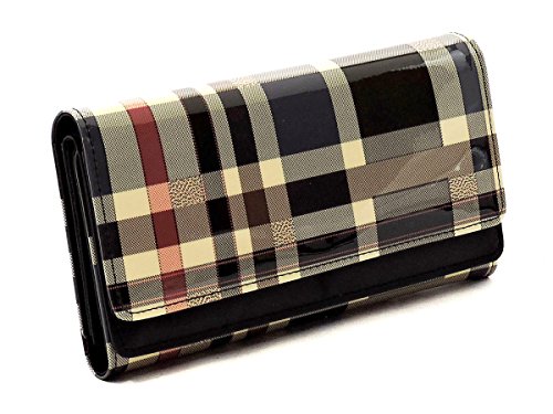Product DescriptionTartan Plaid Pattern Glossy Trifold Wallet Womens Wallet. Made of High Quality Patent faux vegan leather Gold-tone hardware. Magnetic snap closure. High Quality Fabric Lined Interior with Multiple Interior Pockets. 3 Compartments with 6 Card Holders and 1 ID Slot. Measure 7.5" length, 1" width, 4.5" height. 0