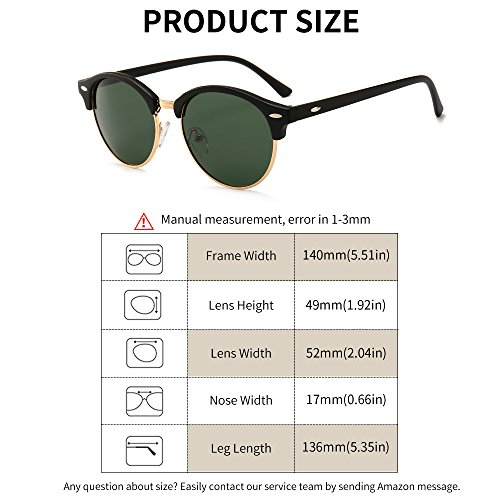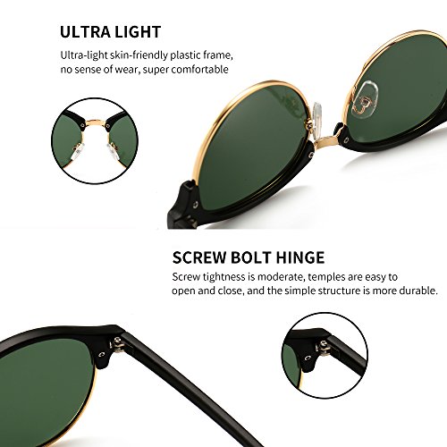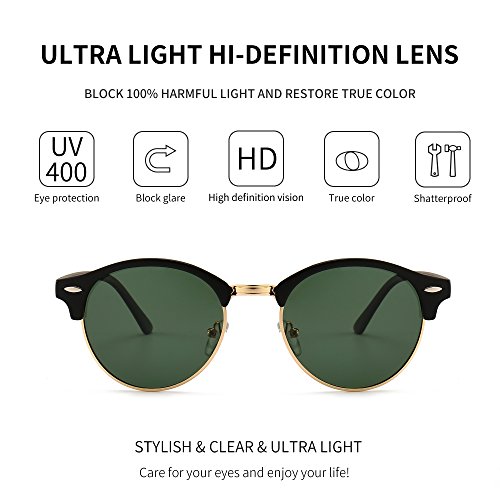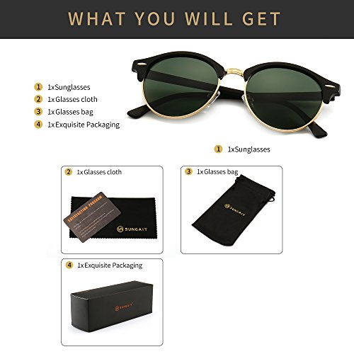 SUNGAIT Retro Round Polarized Sunglasses Classic Semi Rimless for Women Men